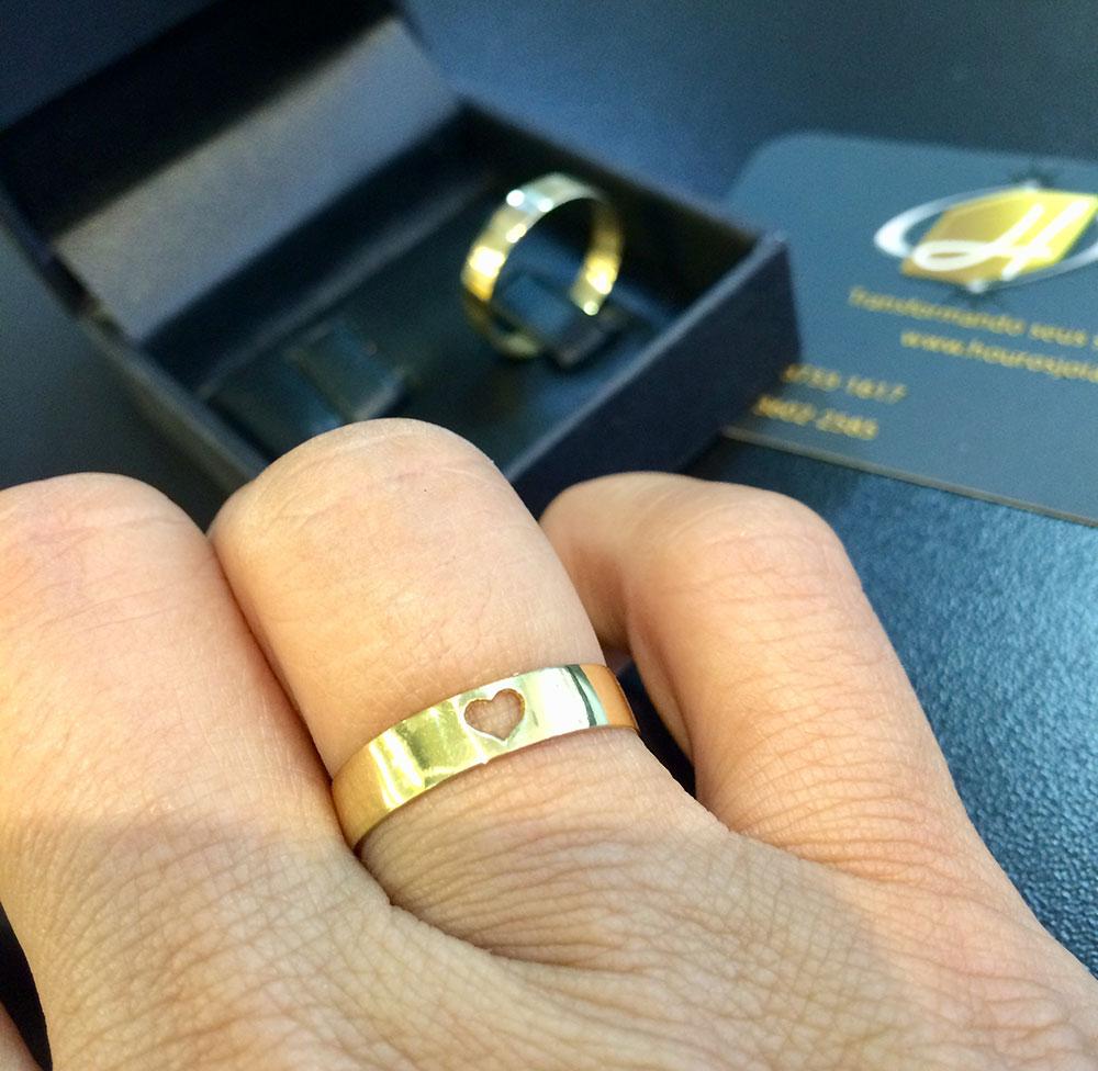 Par de Alianças de Ouro 18k Quadrada Polida coração Vazado