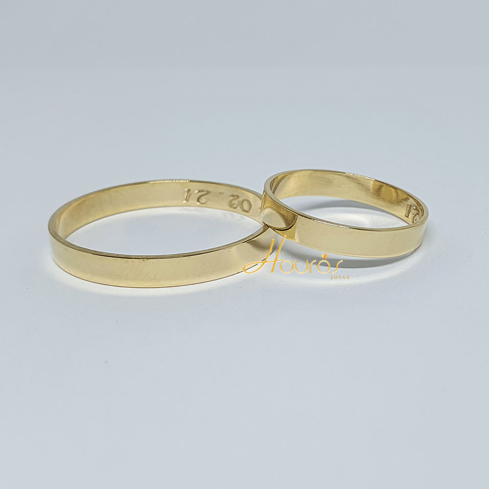 Par de Alianças Ouro 18K Reta 3mm | Houros Joias