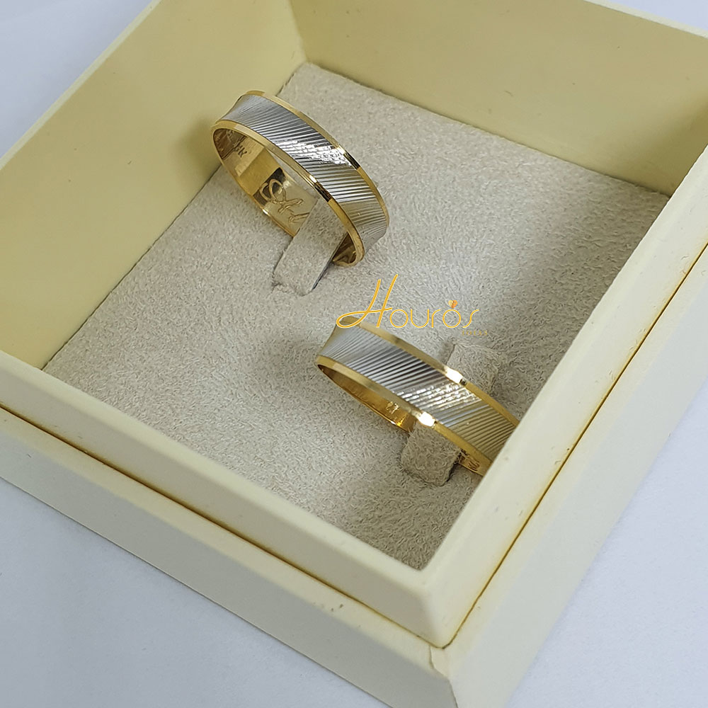 Par de Alianças Riscadinha Reta 5 mm 5 gramas Ouro 18k